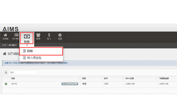 选择存款方式“银联“,选择货币“CNY”,输入存款金额后,选择支付银行,确认无误后点击确认存款”