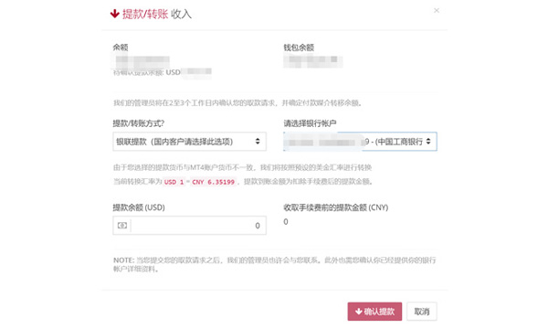在取款页面,点击“提款/转账“,选择提款/转账方式,选择银行账户,填写提款/转账金额,确认无误后,点击”确认提款“,等待审核。